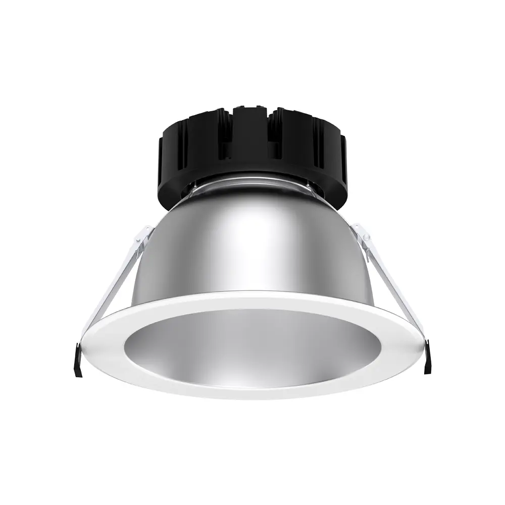Mounts directly recessed into the ceiling with integrated spring action clips.