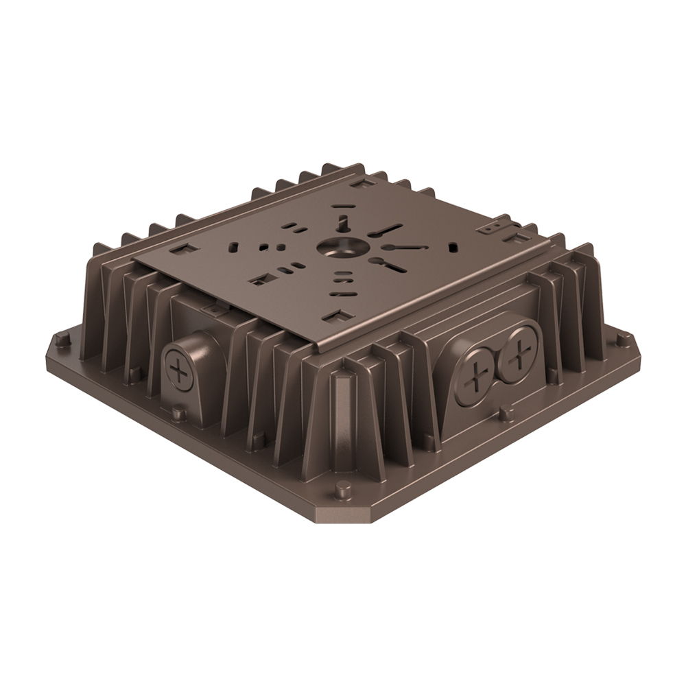 Housing is protected by a corrosion-resistant powder coat available in standard bronze finish. Consult factory for custom color options.
